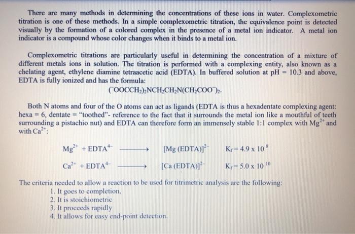 This is a concentrated buffer of high ionic strength added in small amount to titrated samples. How many moles of CaCO3 were used. This is because all the reactions between the metal ions and EDTA are pH-dependent.